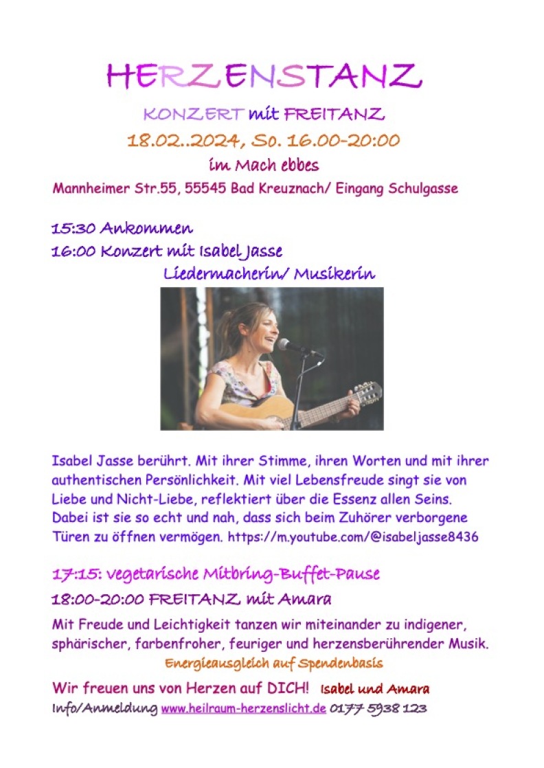 Singer/Songwriter-Konzert und Herzenstanz am 18.02.24